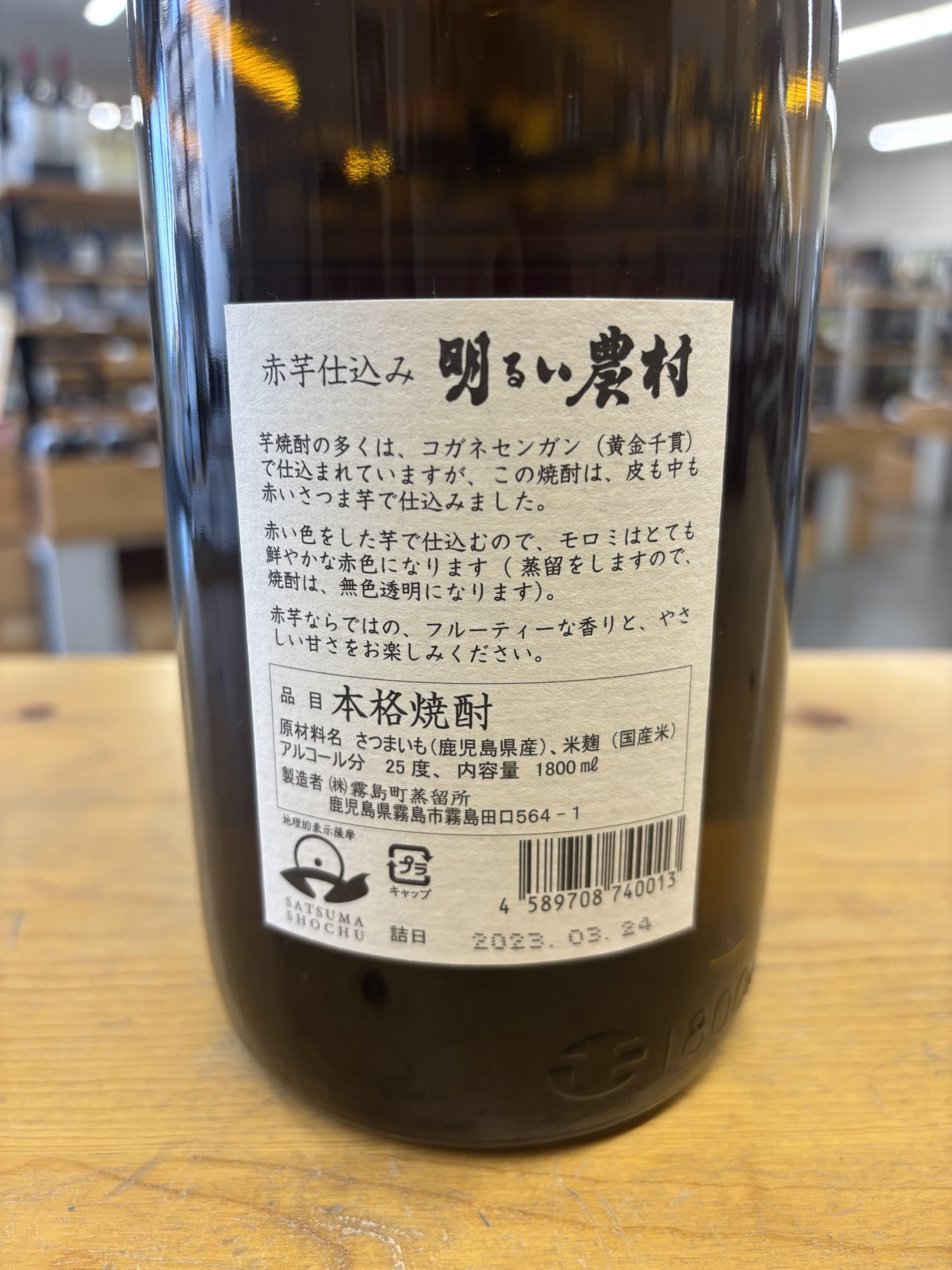 『明るい農村』赤芋仕込み 25度・1800ml × 1 (税抜¥2.900)